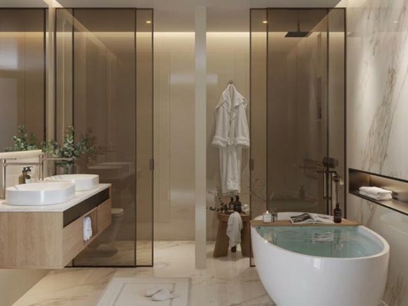 - Infinity pools and landscaped gardens