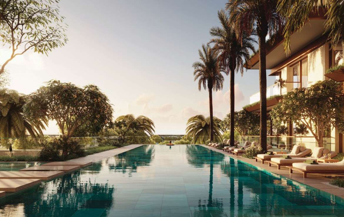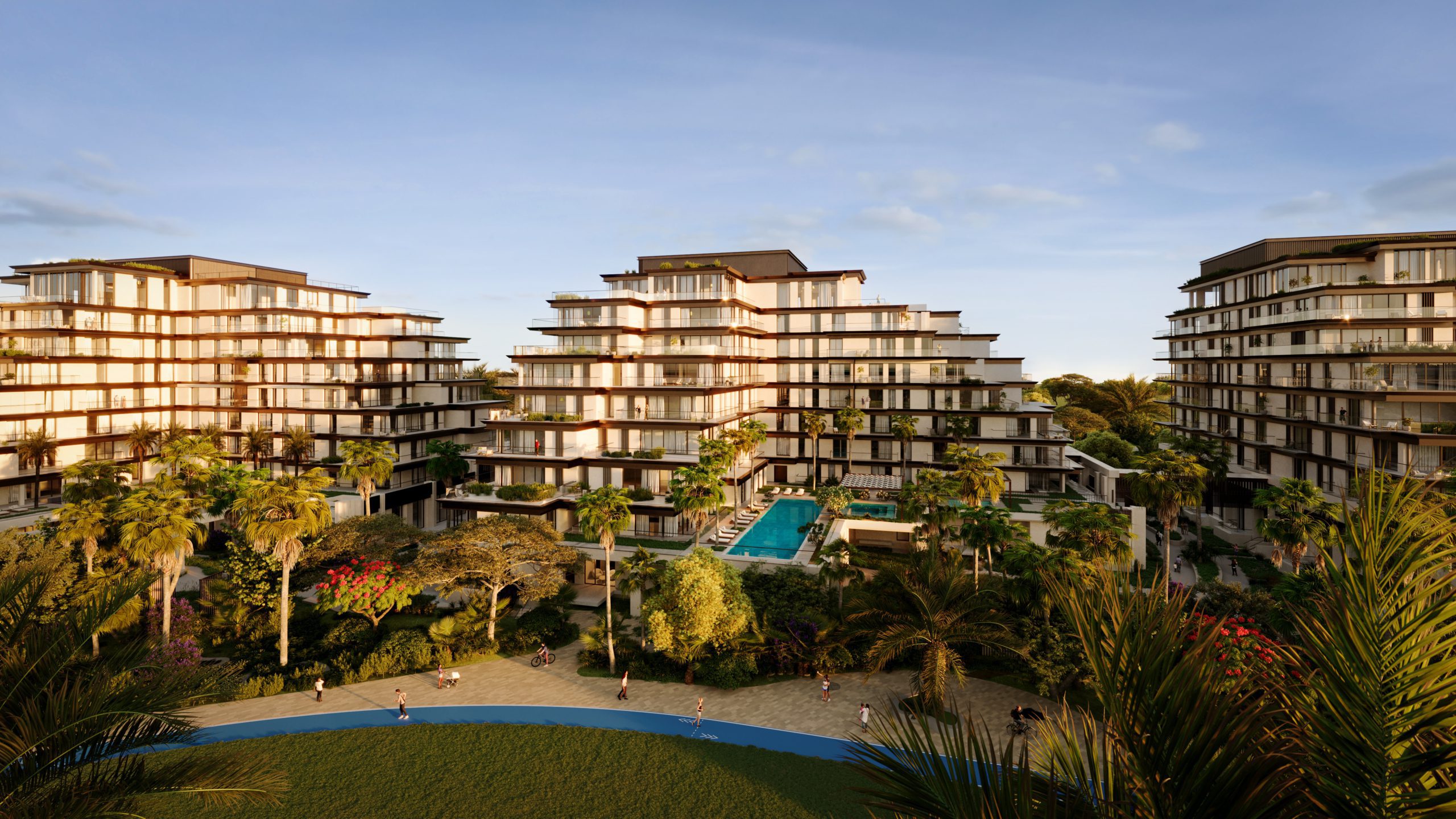 Residents enjoy multiple swimming pools, beach access, wellness centers, landscaped promenades, and eco-friendly community design — perfect for families and active lifestyles.